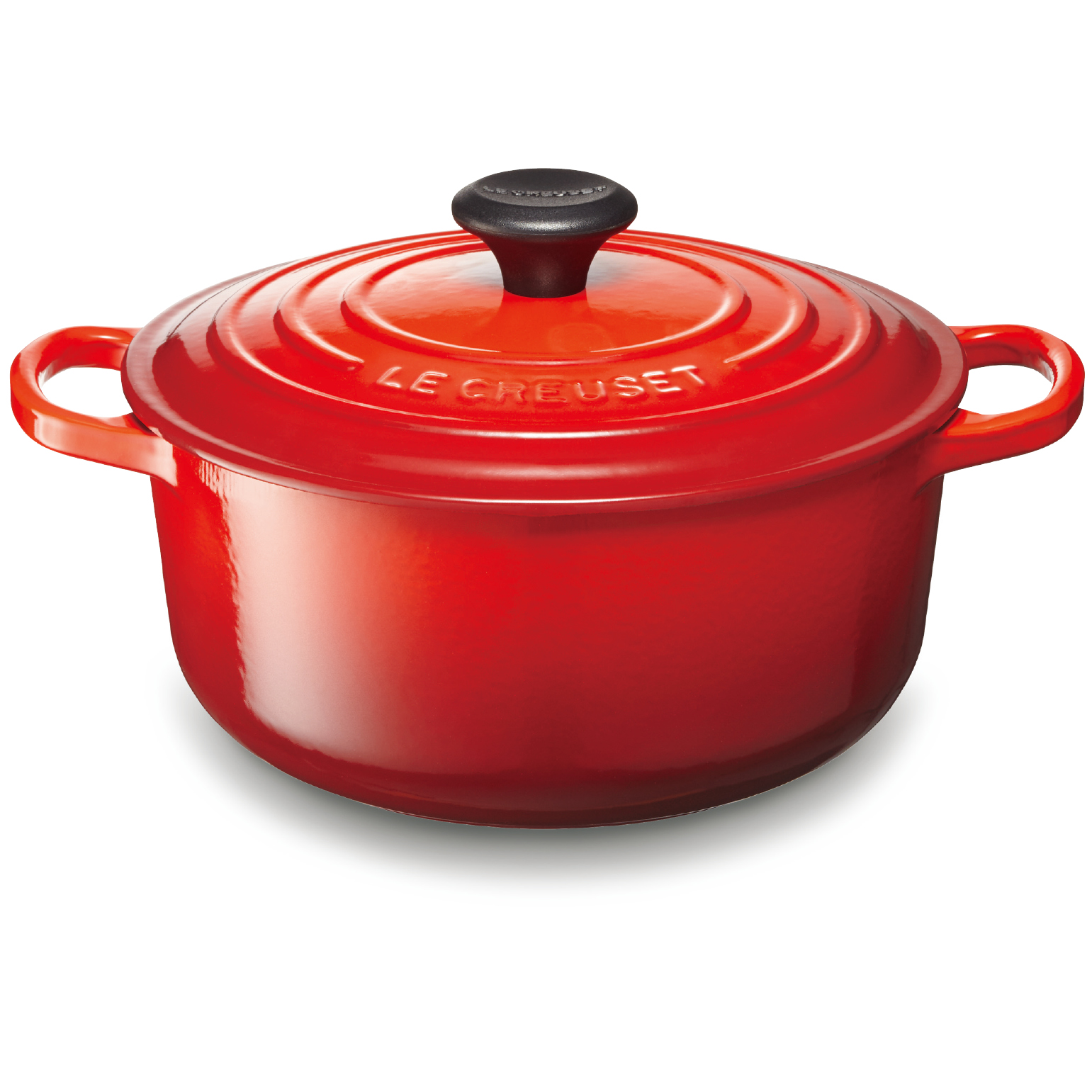 「ココット・ロンド」はル・クルーゼを代表する鋳物ホーロー鍋。煮る、炊く、蒸す、焼く、炒める、揚げる、さまざまな調理法が1つで出来る万能なお鍋です。ガス・直火、IHクッキングヒーター、ハロゲンヒーターはもちろん、オーブンにも対応しています。優れた熱伝導でゆっくりムラなく熱が入り、食材が煮崩れせず、甘みやうまみを最大限に引き出します。また、蓄熱性にも優れているため、料理が冷めにくく、温かい料理のおいしさを一層引き立てます。