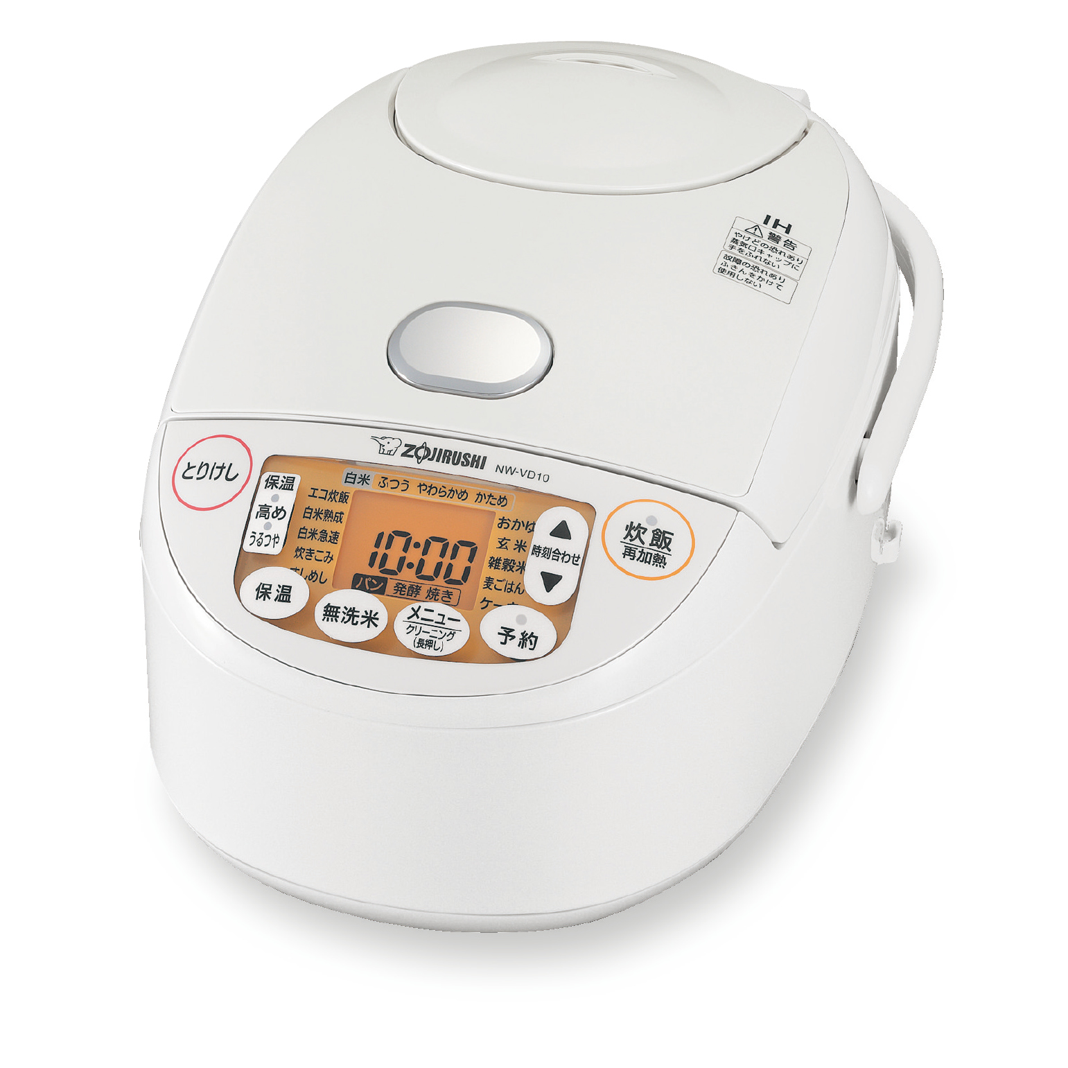 商品詳細/サイズ/約高さ20.5×幅25.5×奥行37.5cm、容量約1.0L、質量約4㎏、コード約1m、素材/印刷鋼板、ポリプロピレン、製造国/日本製 ※電源/100V-1105W。強火で炊き続け、うまみを引き出す『豪熱沸とうIH』。炊き方が選べる『白米炊き分け3コース』。釜全体に熱が伝わる『黒まる厚釜』。