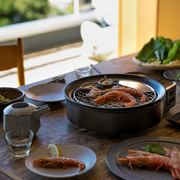 高火力と高い蓄熱性により食材のおいしさを引き出す。串料理や炙り焼きが楽しめる焼き網、炒め料理や煮込み料理にも活躍する深皿や、楽しみひろがるボールプレートなどこだわりの3つのプレート。油受けに水を張ることで煙を抑える「減煙構造」で煙のにおいを気にせず炉ばた焼を楽しめます。普段の食事に活躍する基本の料理から、週末に家族や友人みんなで集まる特別な時間などにおすすめのおもてなし料理、自宅にいながらにして異国の風を感じられる世界の料理や、シーンにあわせたコース料理など、テーマに合わせたレシピブック付き。