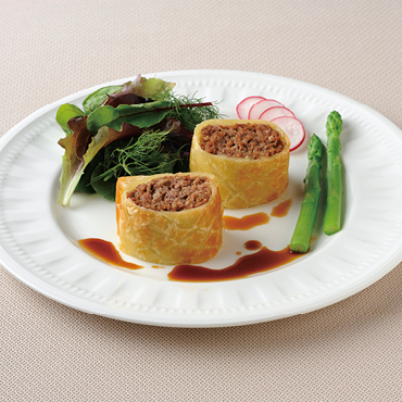 神戸牛を100%使ったビーフパイです。丁寧に焼き上げ、パイ生地のさくさくした食感と神戸牛の旨みをお楽しみいただけます。