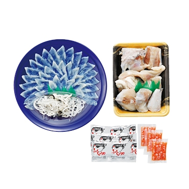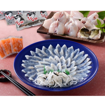 商品詳細/セット内容/とらふぐ刺身45g、とらふぐちり250g(切身100g、アラ150g)、とらふぐ皮40g、ふぐ醤油30ml×3、もみじおろし10g×3、賞味期間/冷凍90日、とらふぐ/国産(養殖) ※配送先は日本国内住所限定となります。