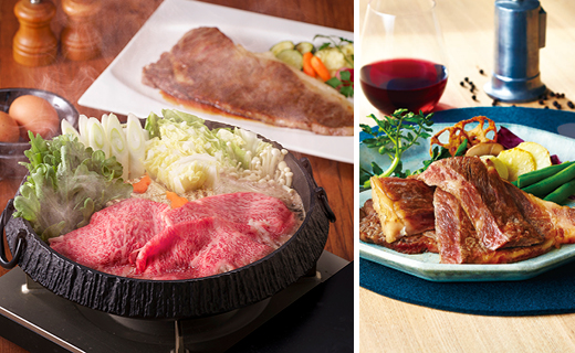 柔らかく旨味のある近江牛をステーキとすき焼で