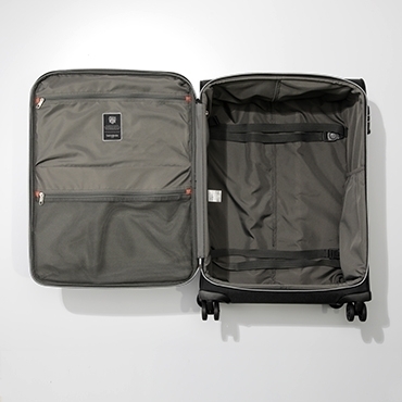 ジャニックは、最大の容量を確保するというコンセプトのもとに作られた4輪ソフトキャリー。本体の底を低くすることで、約81Lの収納部が生まれました。しかも3.7kgという軽さを実現し、ビジネススタイルに合わせやすいデザインになっています。Samsoniteのロゴは、縦向きにレイアウトすることでスマートさを表現。堅牢・軽量なプルハンドル、ラゲッジカバーなどの機能も充実。狭い場所でも荷造りしやすい横開きタイプです。ホイールは、凸凹道でも安定感を保つダブルホイールを採用しています。4~7泊程度の出張やご旅行に適したサイズです。