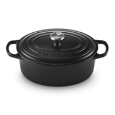 本体の鋳物に複数層のホーローを焼き付けた、保温性抜群の鋳物ホーローウェア。ずっしりとした重さ・厚みが、ル・クルーゼの美味しさの秘密です。煮物、揚げ物、炊飯とどんな料理にも真価を発揮します。サイズの長い食材を調理するのにも便利な楕円型の両手鍋なので、魚や肉もまるごと、本格的なお料理に重宝します。
