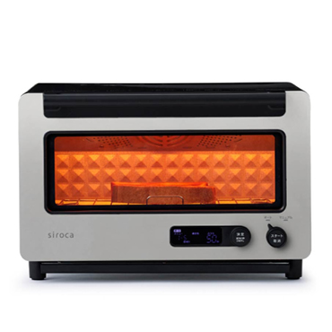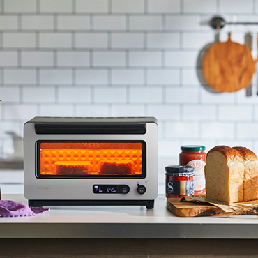 パンに含まれている水分を閉じ込めて理想的に焼き上げる、独自技術『炎風テクノロジー』搭載。 厚切りパンやクロワッサンにも対応『業界最高クラス10cmの庫内高』。 毎日のトーストも彩り豊かに、もっとおいしく『冷凍アレンジトーストメニュー搭載』。 4、5、6、8枚切りの厚みや、焼きいもはねっとり、ホクホク、あなた好みに焼き上げる『オートメニュー』。