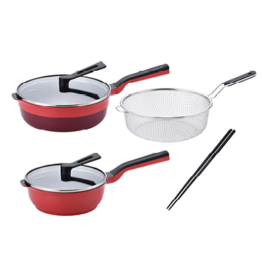 レミパンプラス&ミニ&ストレーナー&菜箸セット(レッド)