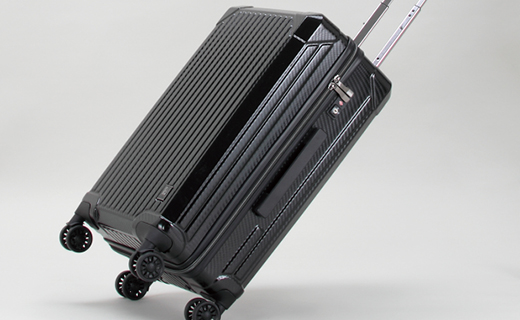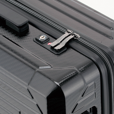 ※4輪キャスター式、TSAロック付き、開口部:ファスナー式、内部:メッシュファスナーポケット2・仕切り1、取手:伸縮式ハンドル(3段階調節)。